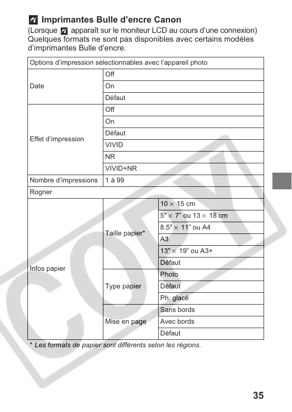 * Les formats de papier sont différents selon les régions.