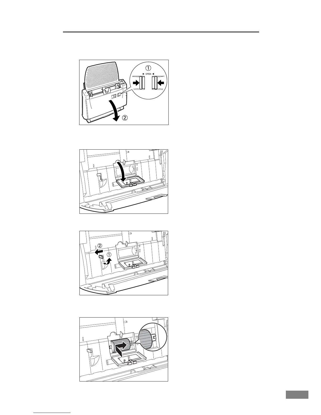 Open the roller cover inside the scanner. To open the cover, set your finger in