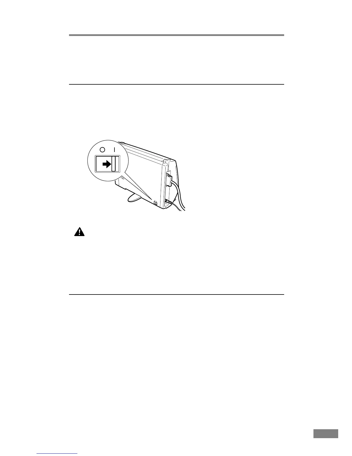 To turn the scanner on, slide the power switch towards the “|” mark. When