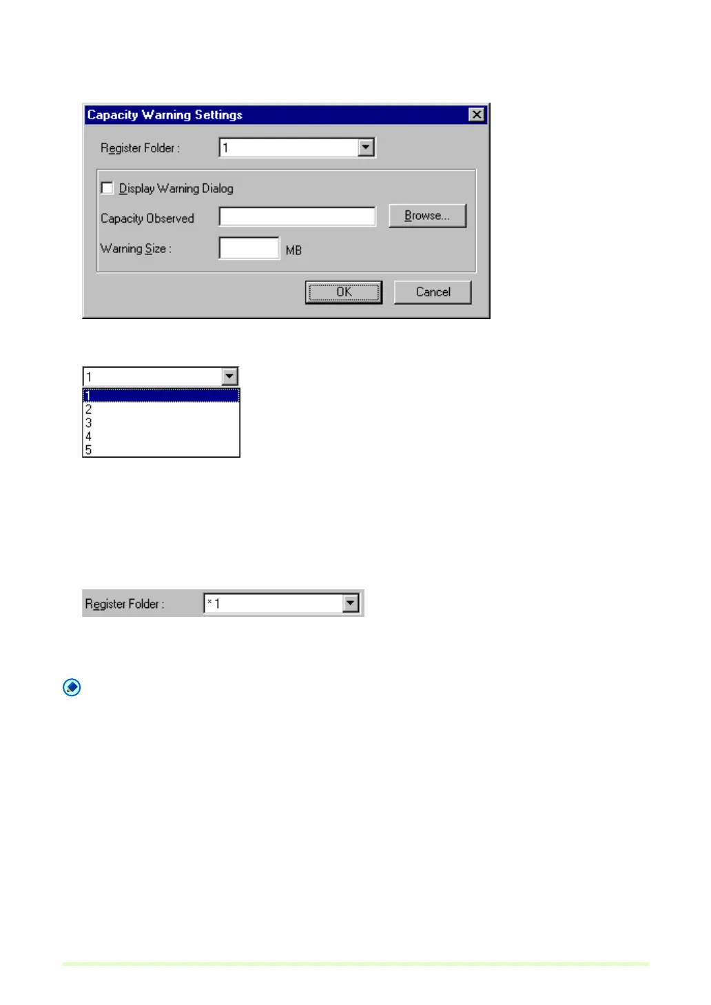 • A maximum of five folders can be specified for capacity warning.