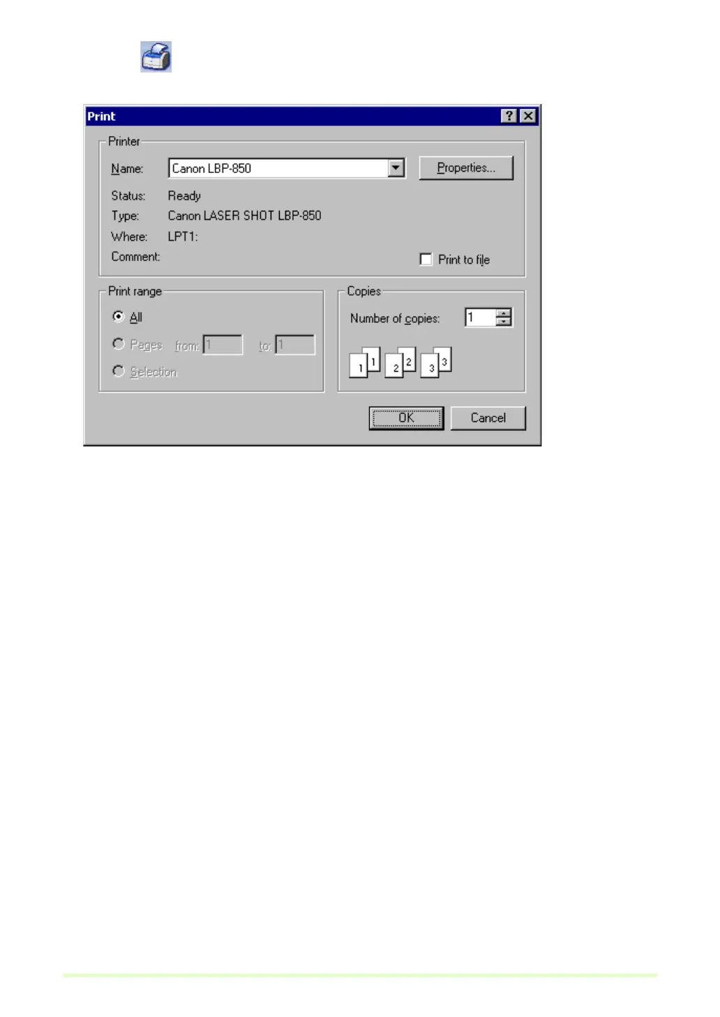 4 Click the button on the toolbar. (Or click Print in the File menu.)