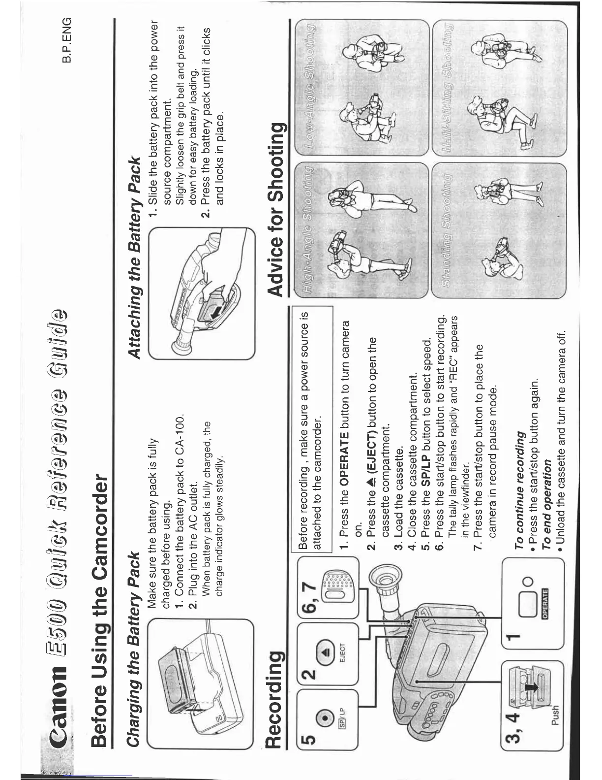 Canon E 500 - Canon E500 Camcorder Initial Setup; Before Using the Camcorder