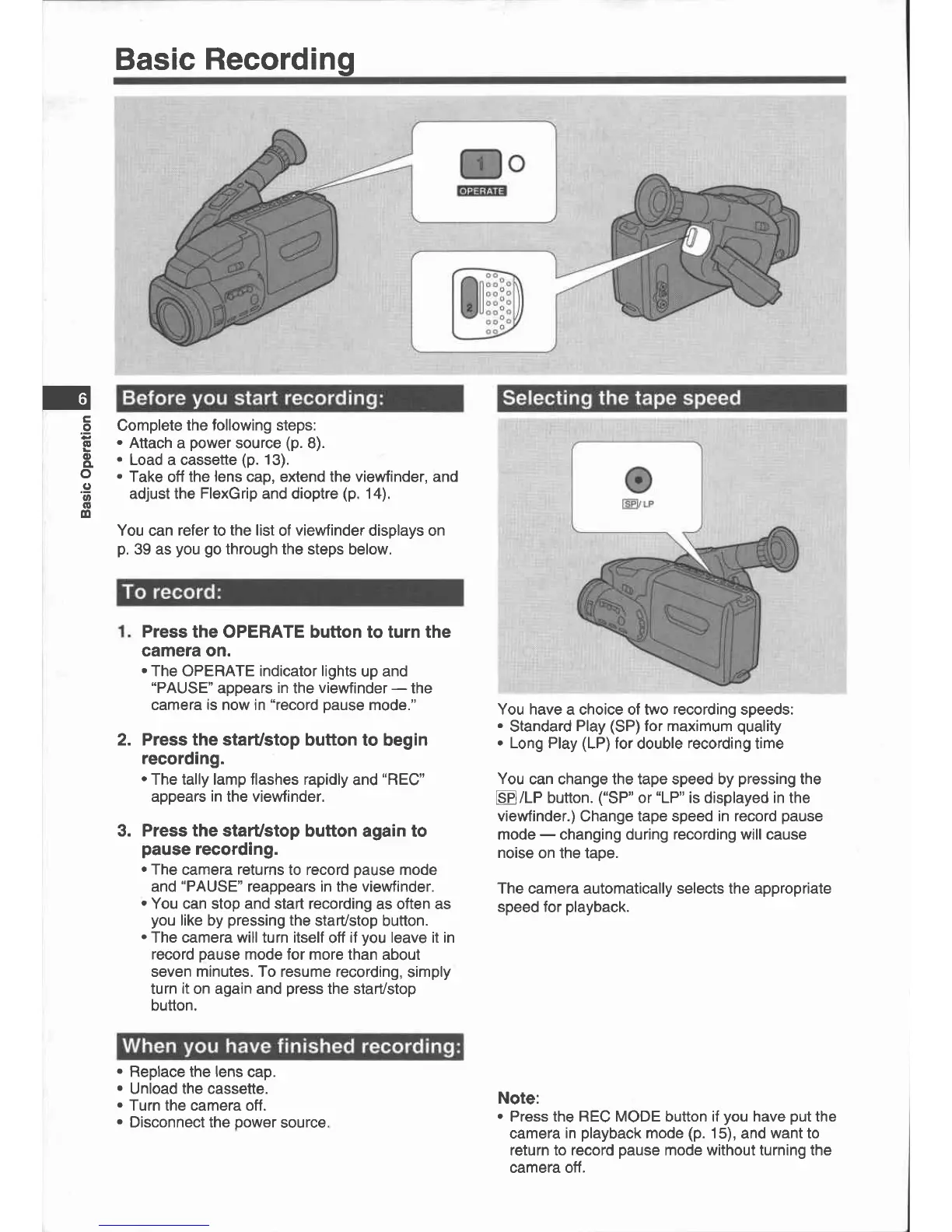 Canon E 700 - Basic Recording; Selecting the tape speed