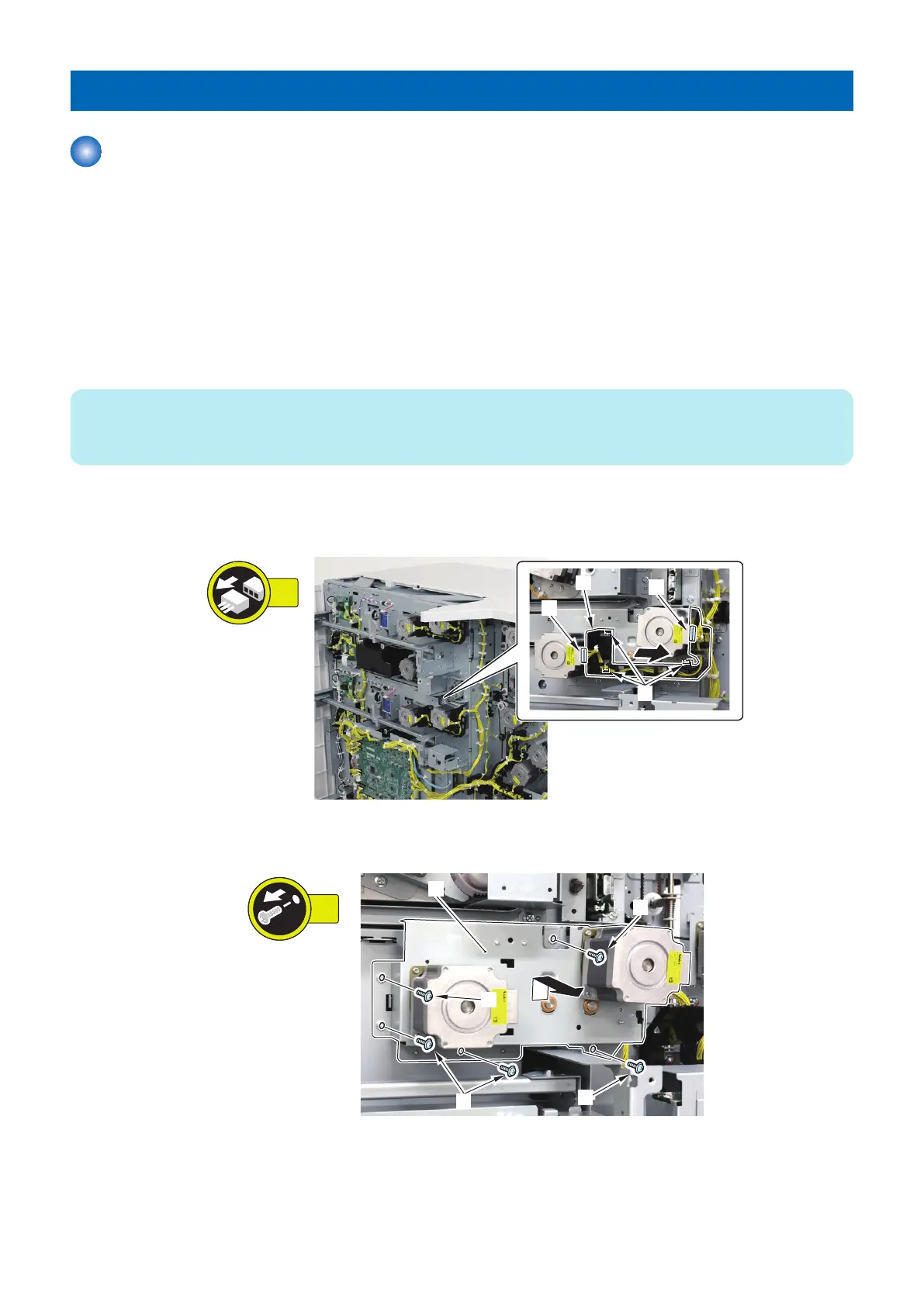 The removal procedure of the Deck Pickup Motor from the Middle Deck is described below. The procedure of the Upper and Lower
