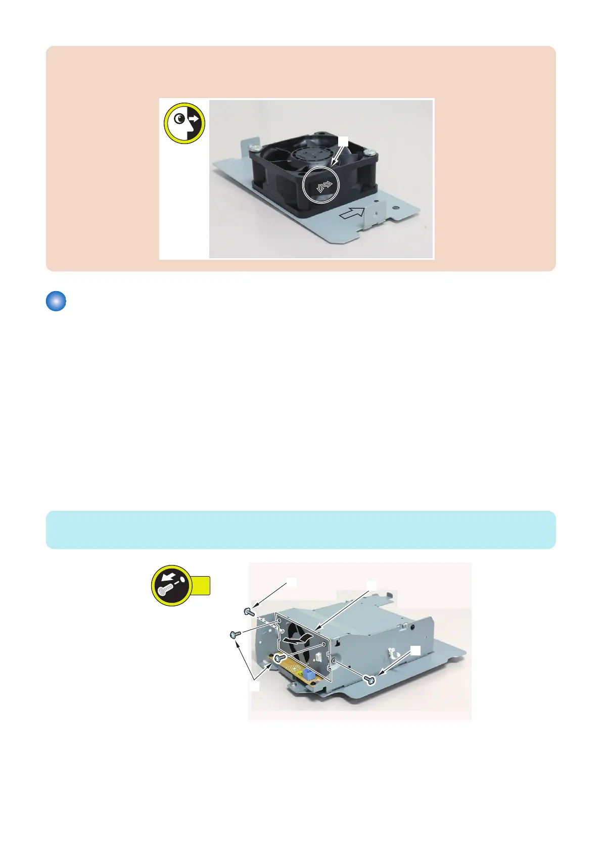 Attach Power Supply Cooling Fan 1 to the bracket so that the arrows [A] on the fan are pointing to the directions shown in