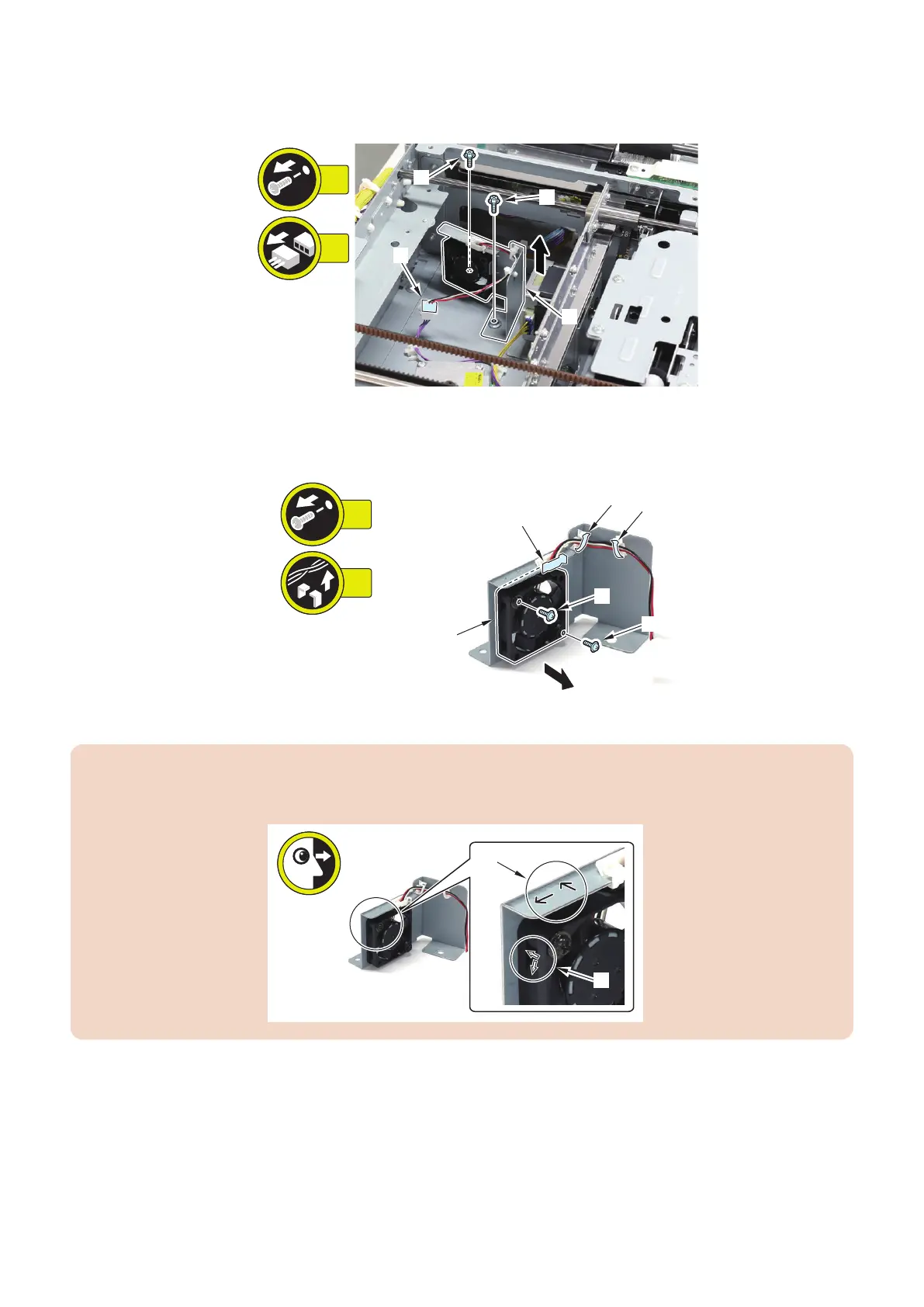When installing the Through Path Cooling Fan, align the direction of the arrow [B] on the fan with the arrow (engraved mark)