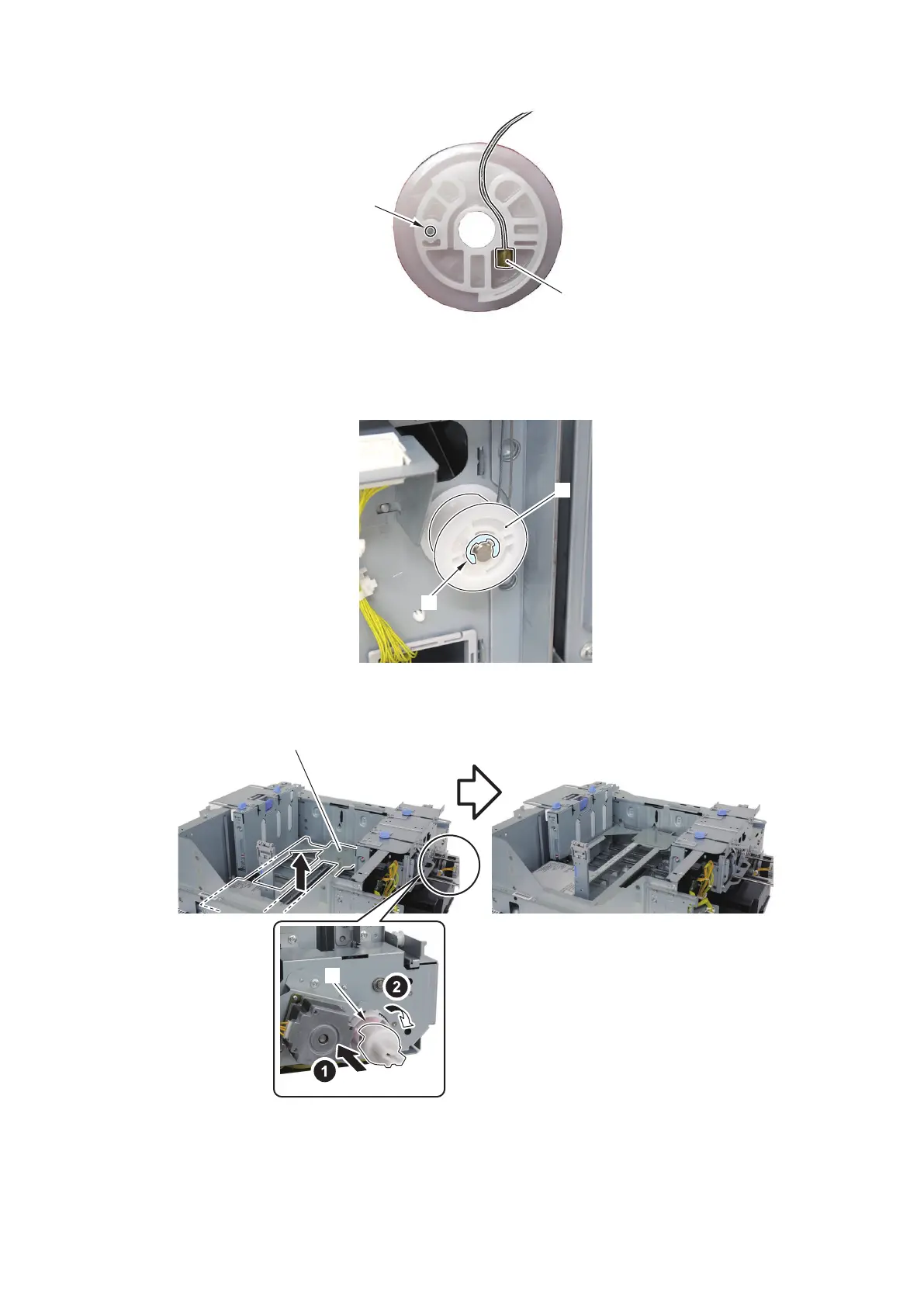 7. Set the Short Lifter Wire [1] and the Parallel Pin [2] to the Wire Pulley.
