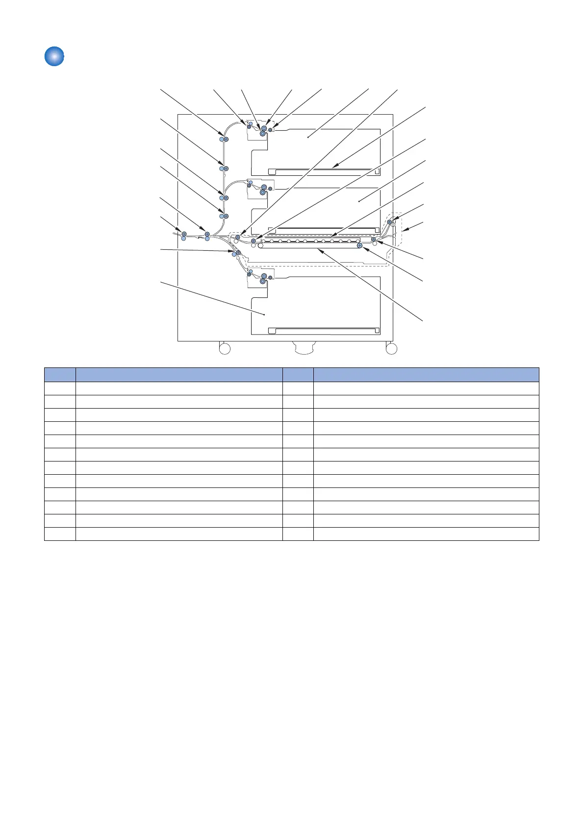 [2] Upper/Middle/Lower Deck Separation Roller [14] Feed Belt Drive Roller