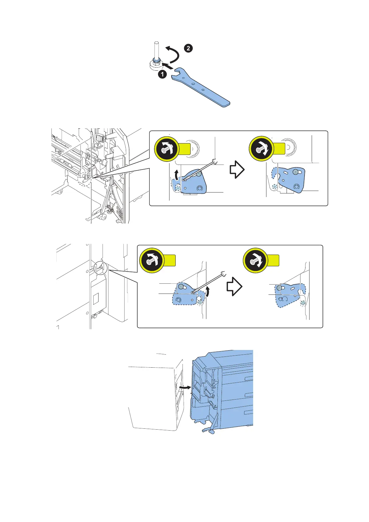 23. Loosen the Fixing Screw of the Latch Plate at the rear. Release the Latch Plate and tighten the Fixing Screw.