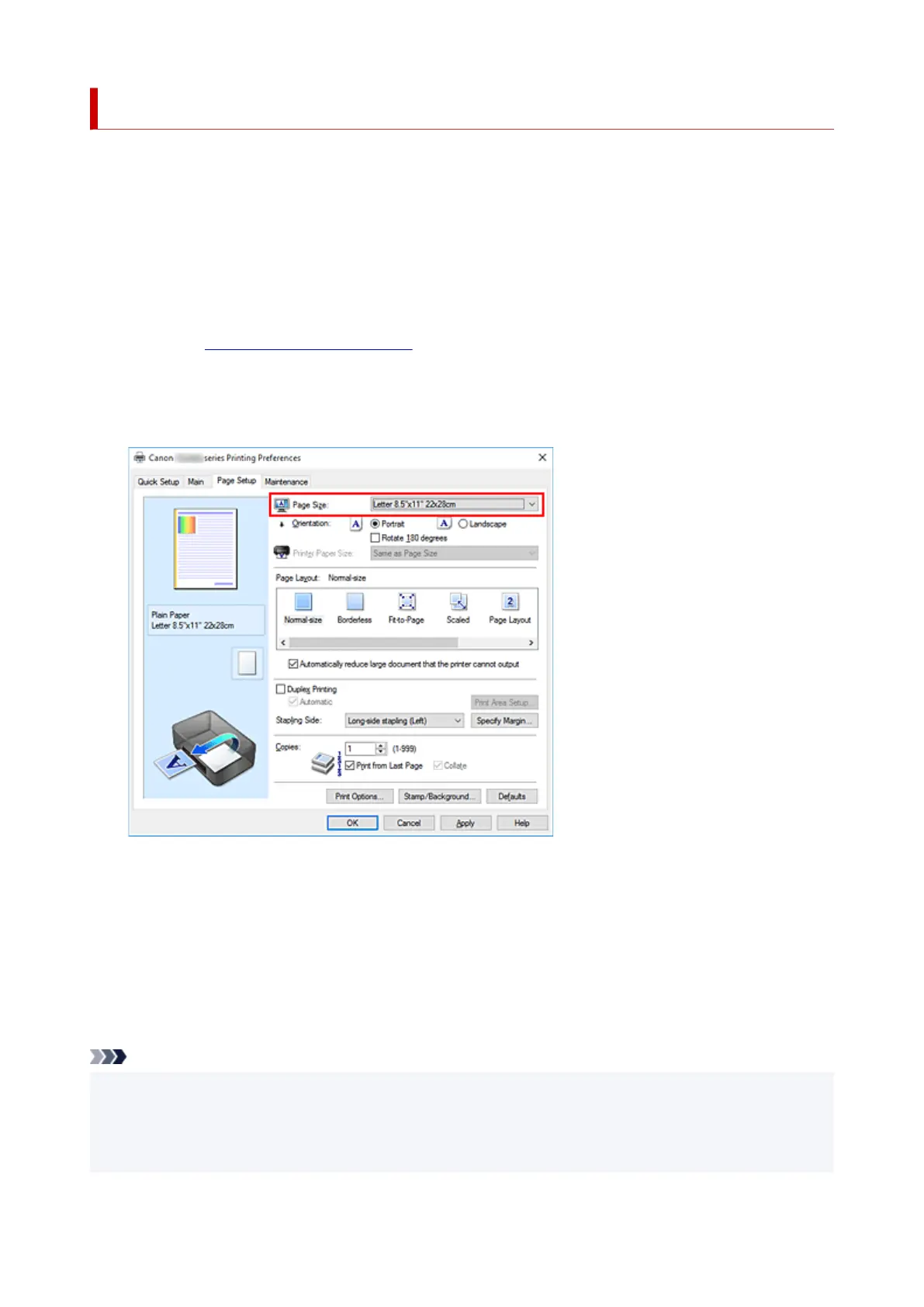 When you are not able to specify them with the application software, the procedure for selecting a page size