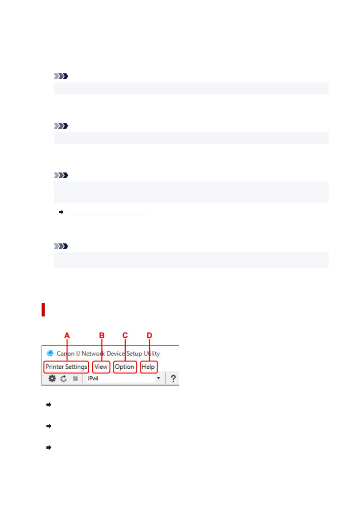 This section describes menus on Canon IJ Network Device Setup Utility screen.