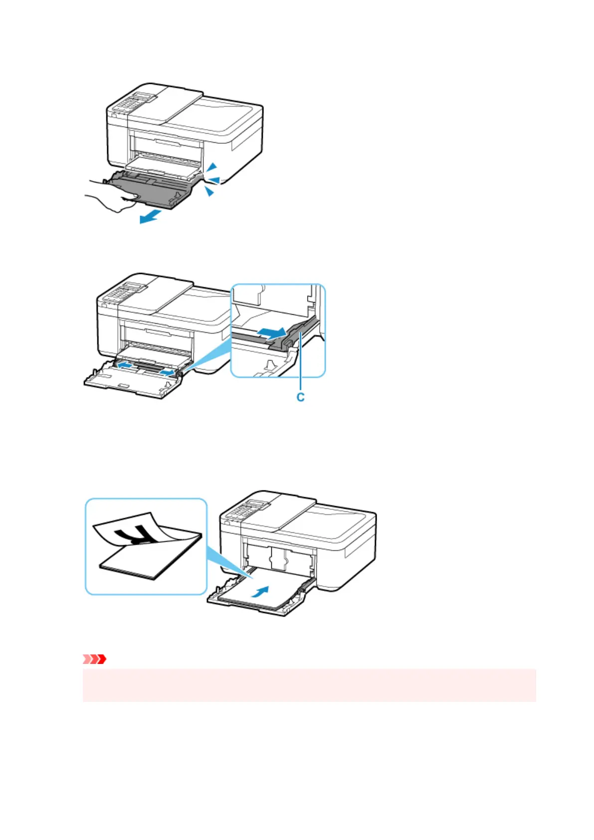 Use the right paper guide (C) to slide both paper guides all the way out.