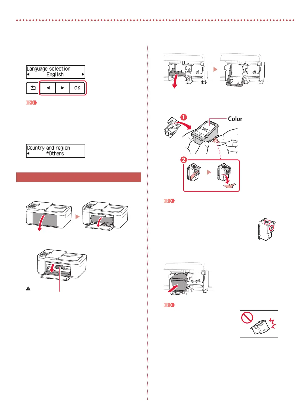 Không chạm vào khay chứa hộp mực cho đến khi khay
