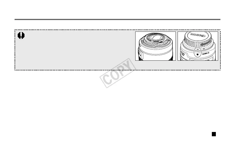 • If you remove the lens, cover it with the dust cap. To attach it properly, align the lens mount index and the index of the