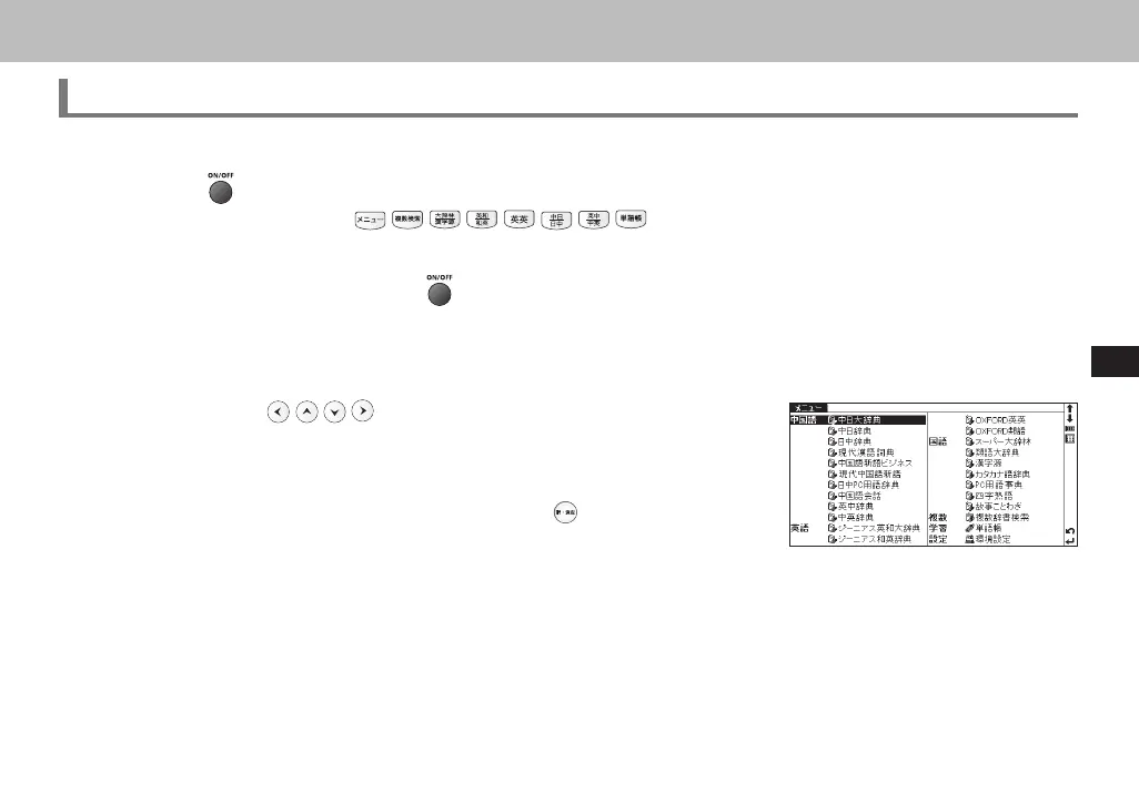 Use cursor keys to select a dictionary in the Main Menu or to