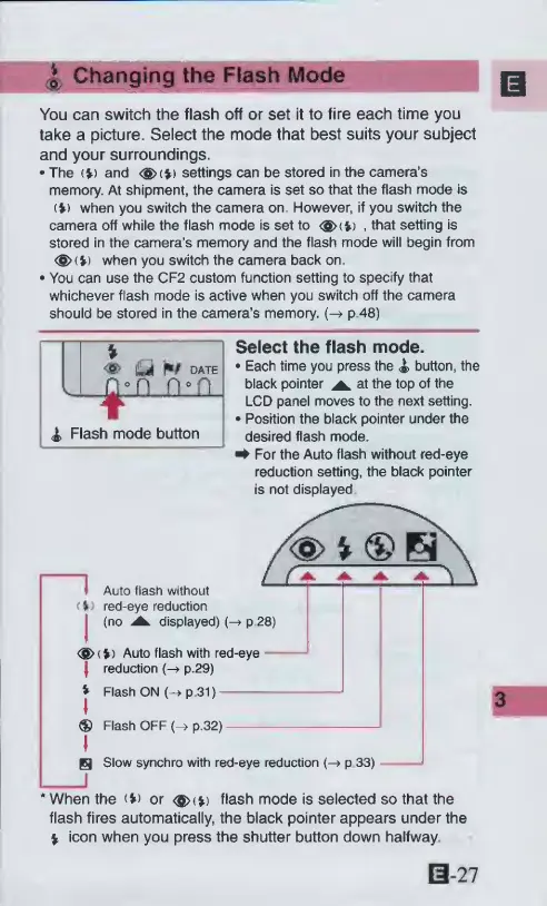 Canon ELPH 2 - Changing the Flash Mode; Select the flash mode