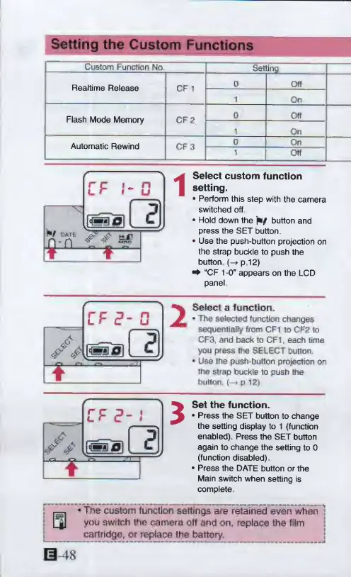 Canon ELPH 2 - Setting the Custom Functions; Select custom function setting; Select a function; Set the function
