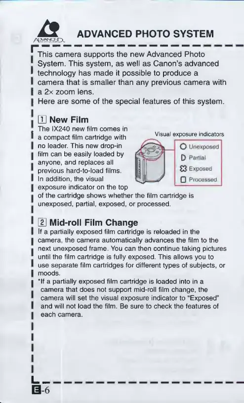 Canon ELPH 2 - ADVANCED PHOTO SYSTEM Features; ADVANCED PHOTO SYSTEM; 2 Mid-roll Film Change