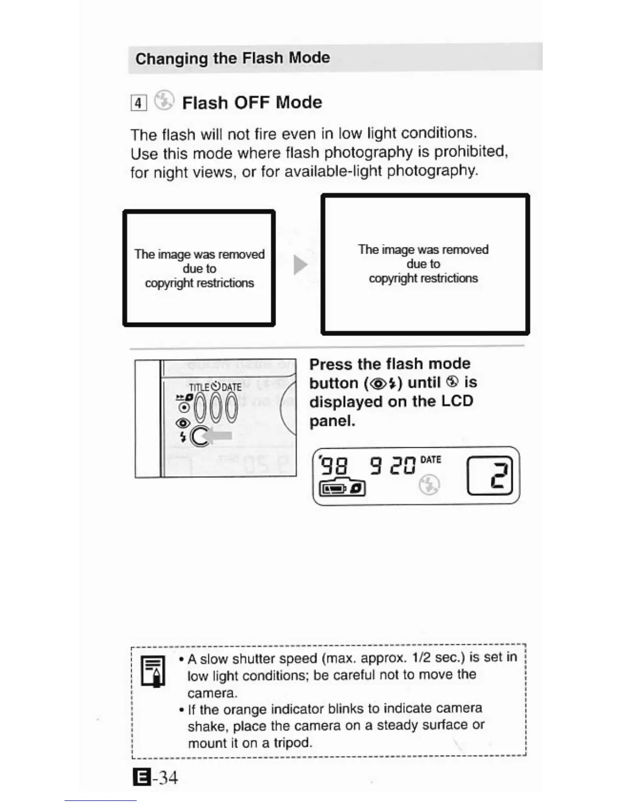Canon ELPH LT - Flash OFF Mode