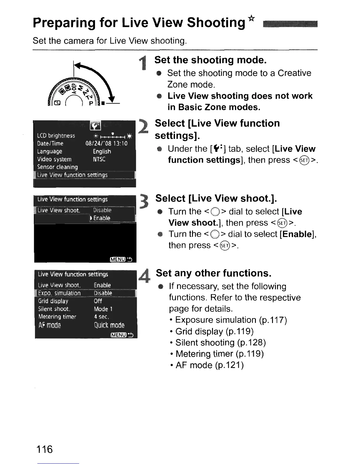Set the camera for Live View shooting.
