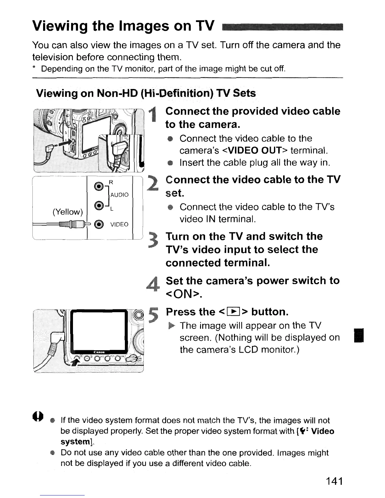 o • If the video system format does not match the TV's, the images will not