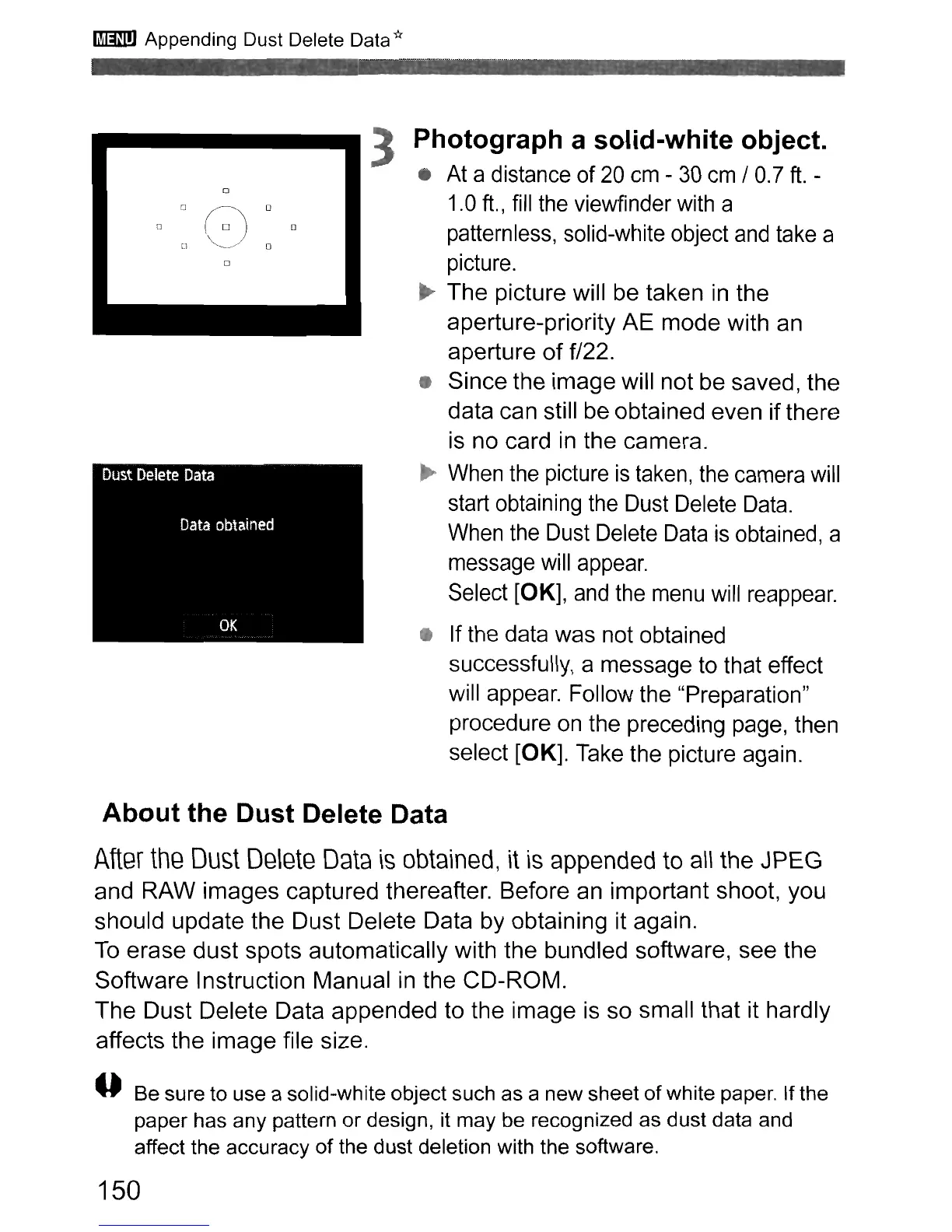 The Dust Delete Data appended to the image is so small that it hardly