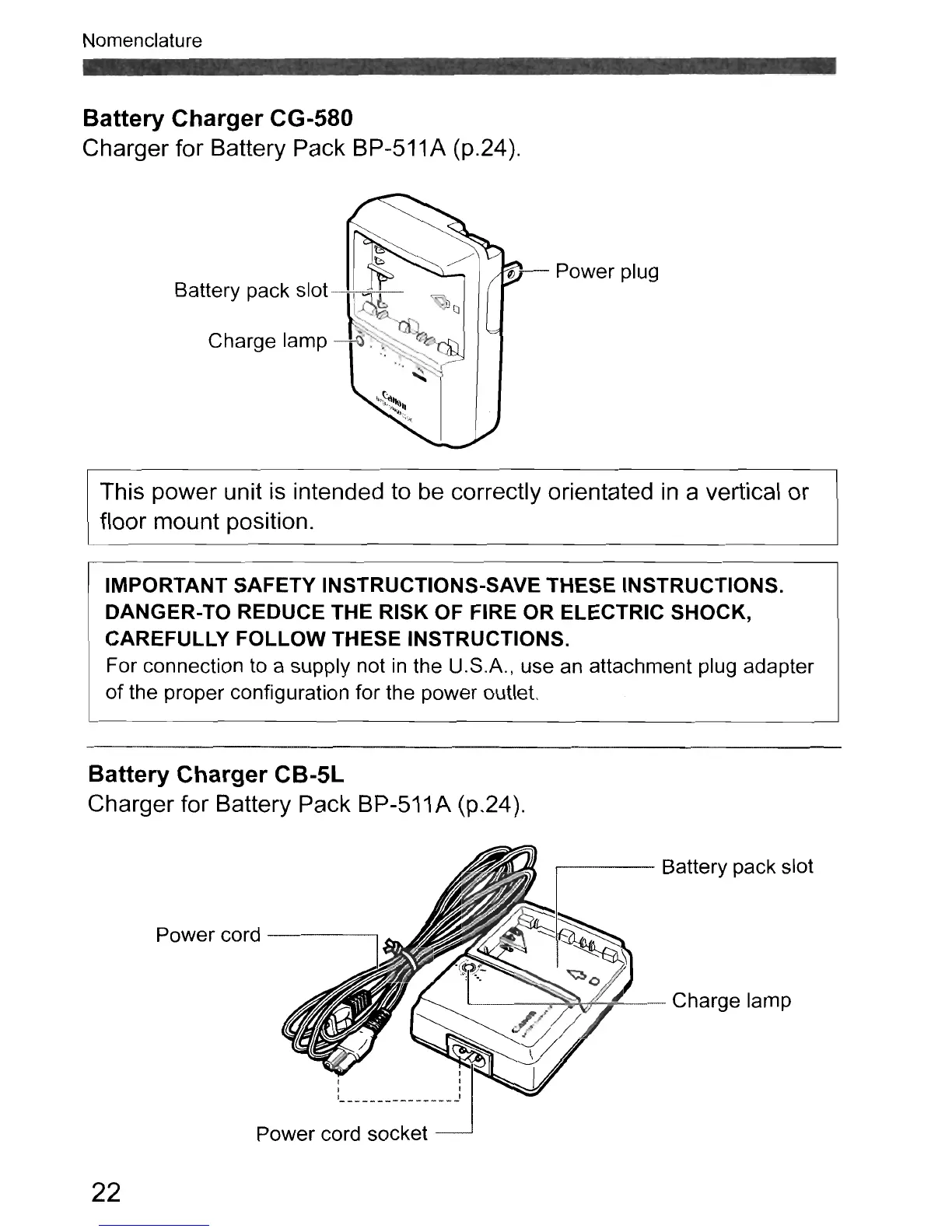 Charger for Battery Pack BP-511 A (p.24).