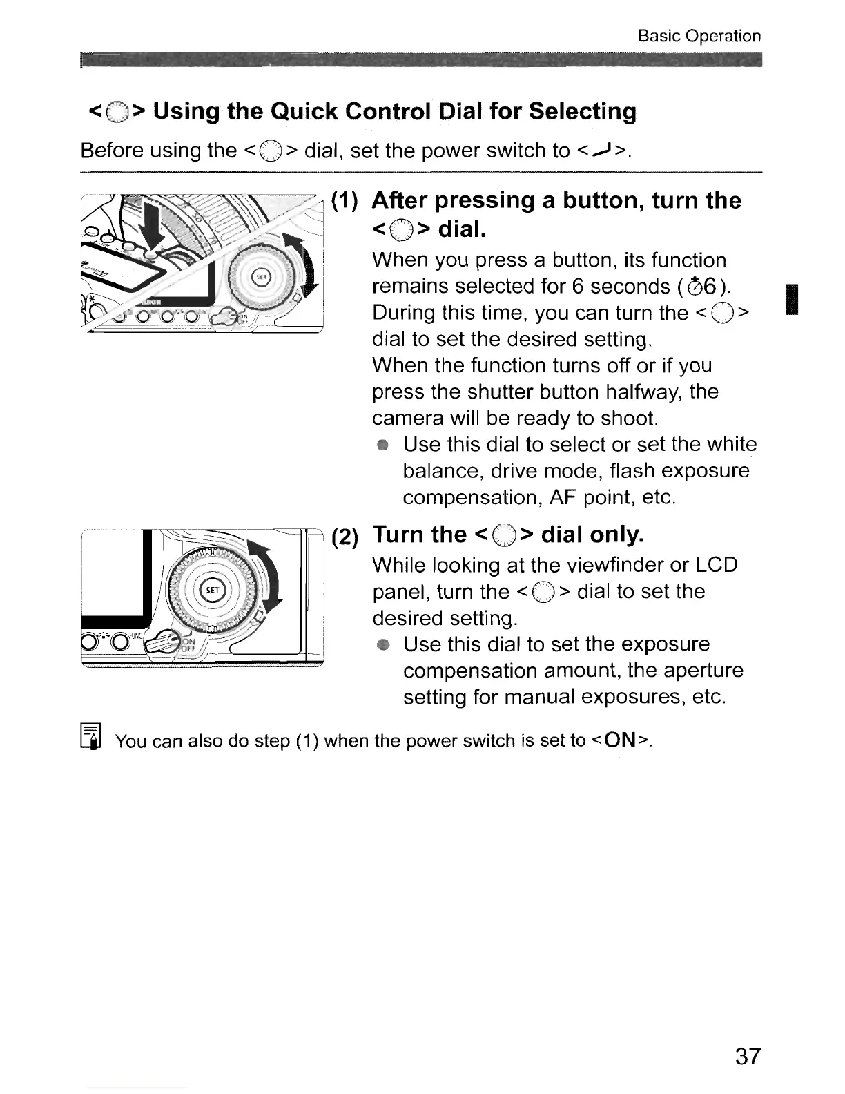 <0 > Using the Quick Control Dial for Selecting