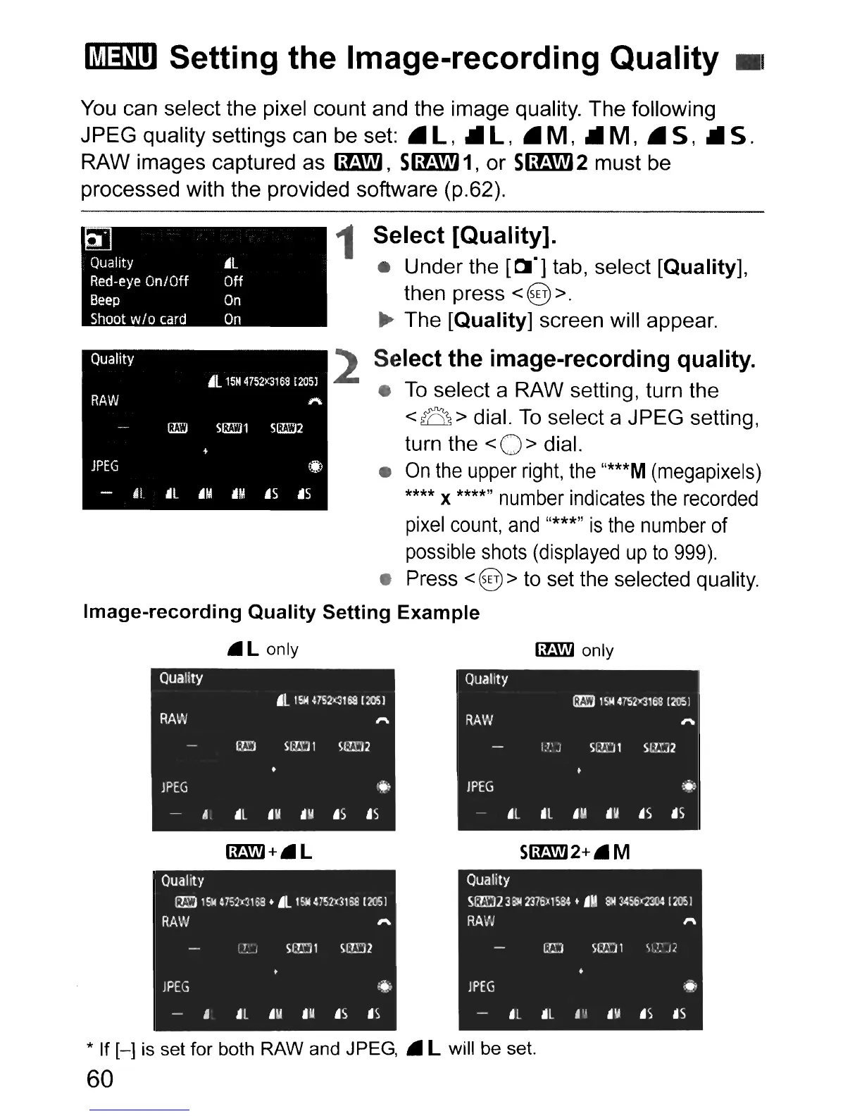 is set for both RAW and JPEG, • L will be set.
