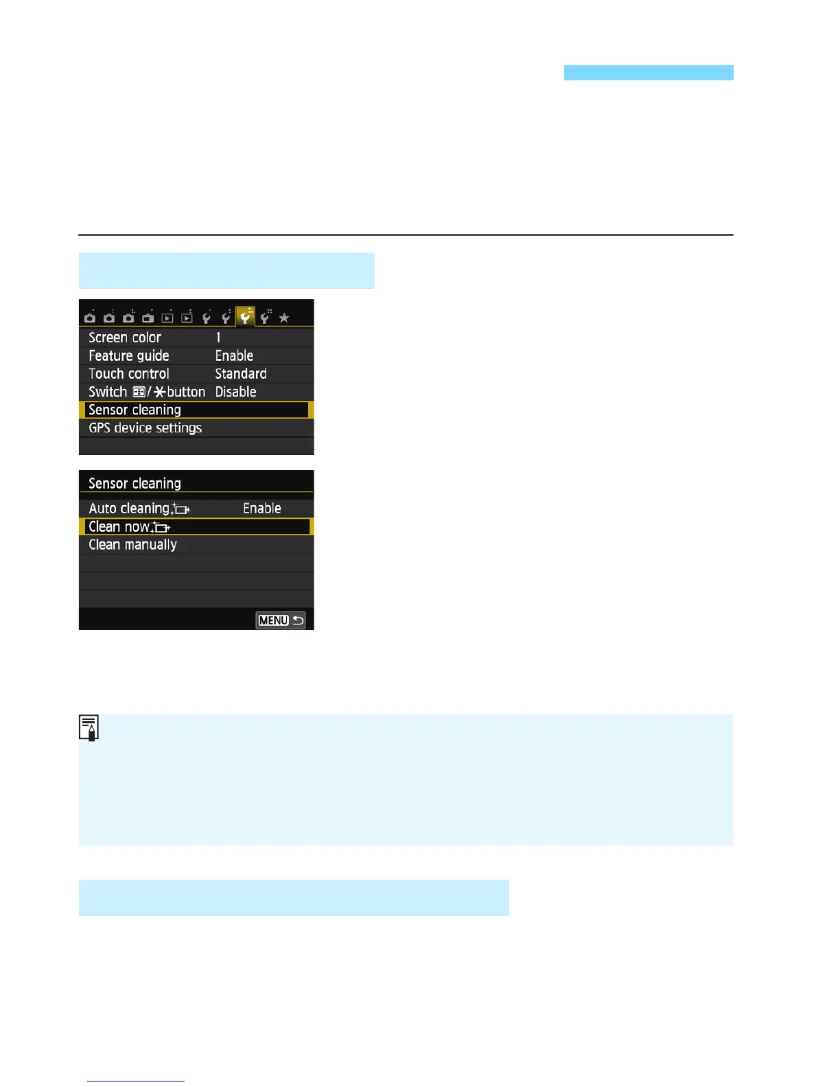 X The sensor cleaning will no longer be executed when you set the