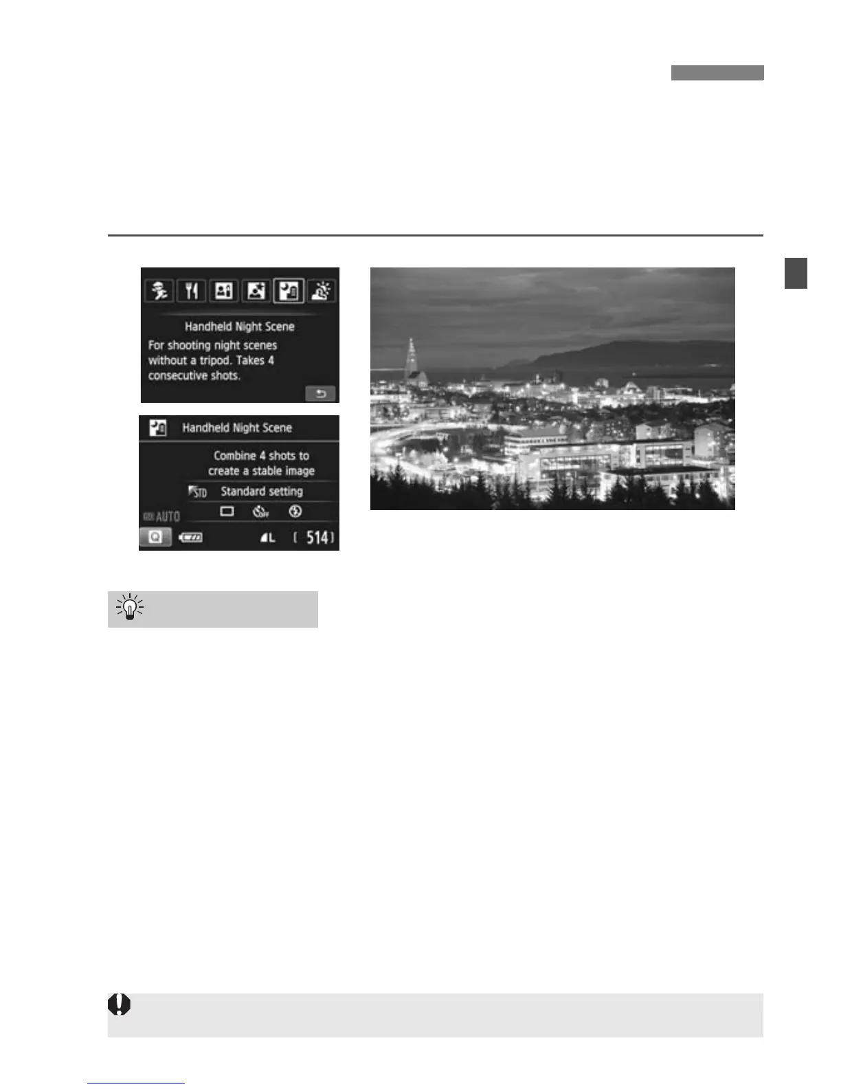 night scenes even while handholding the camera. Four shots are taken