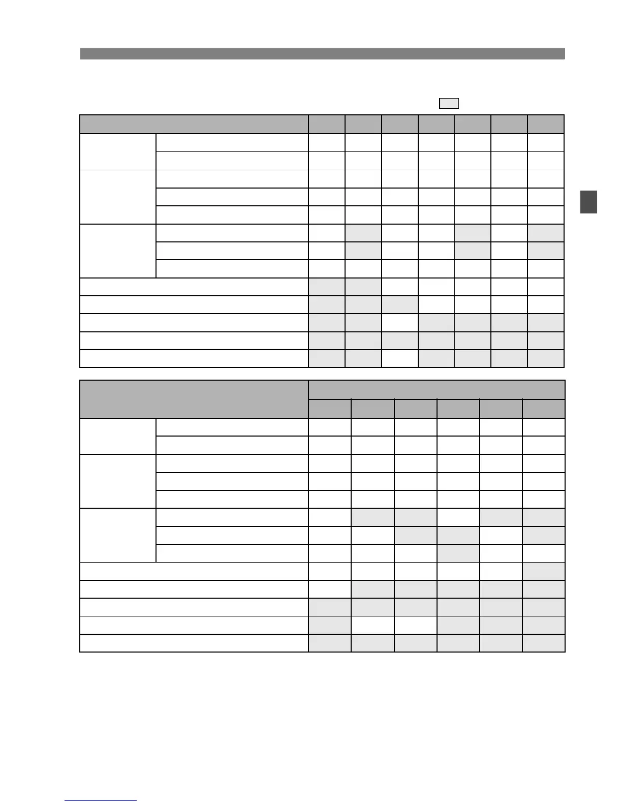 o: Default setting k: User selectable : Not selectable