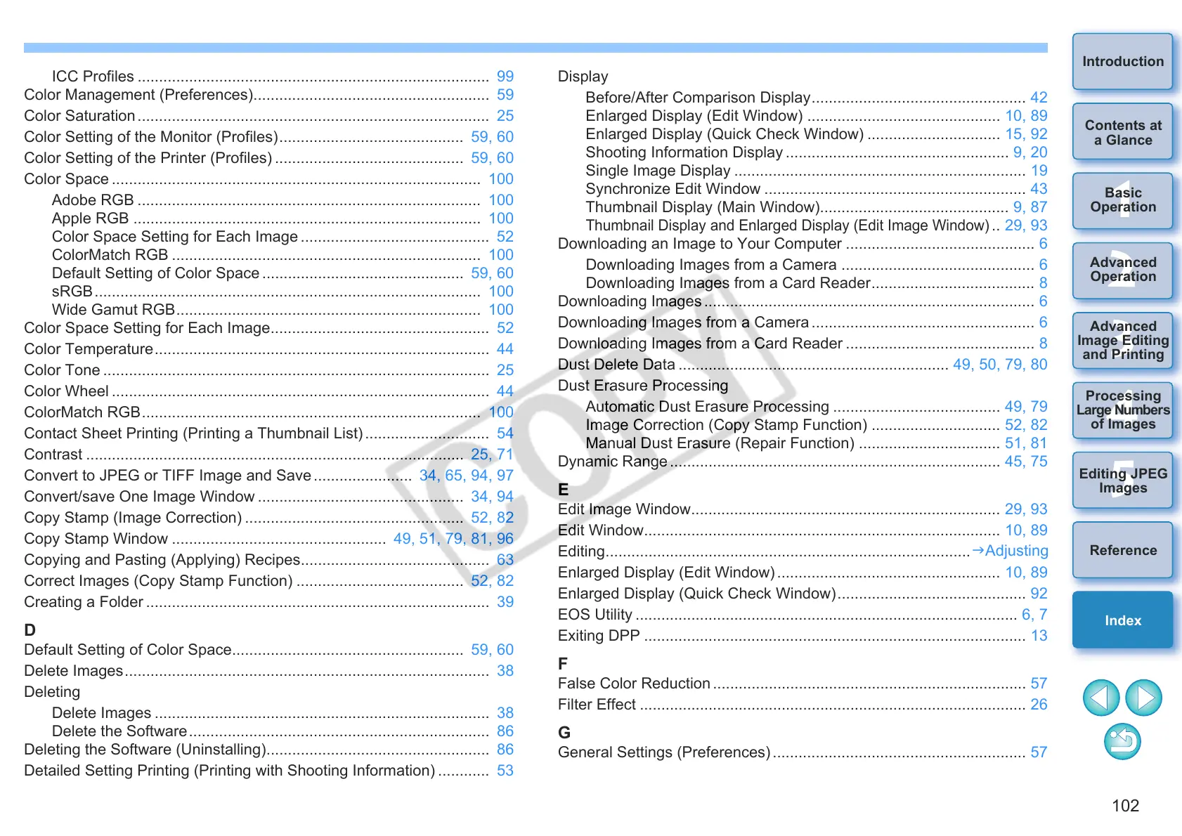 Convert to JPEG or TIFF Image and Save....................... 34, 65, 94, 97