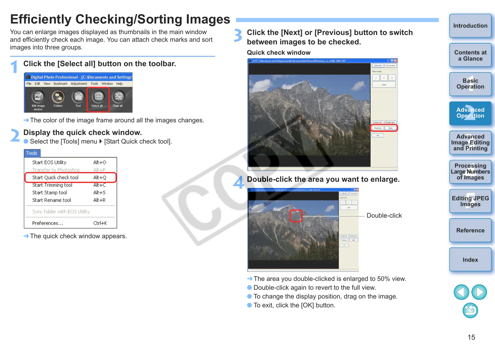¿ The area you double-clicked is enlarged to 50% view.