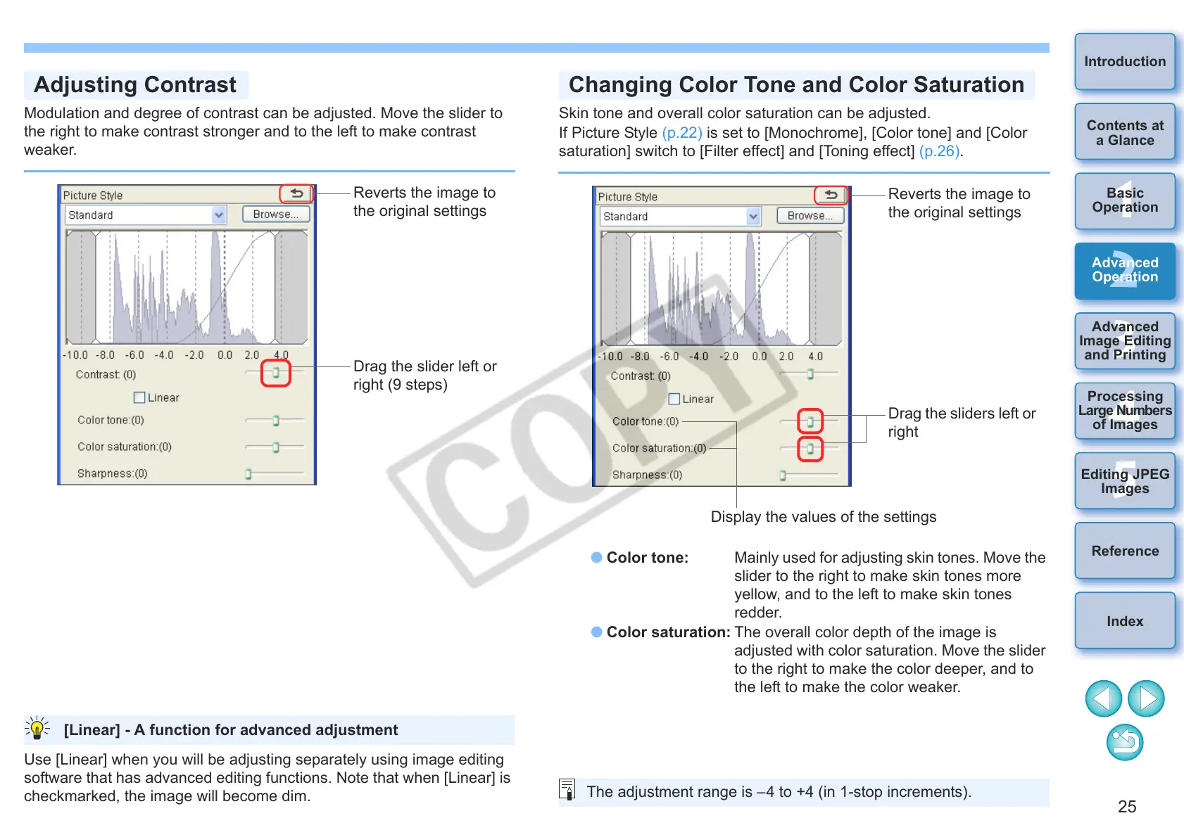 saturation] switch to [Filter effect] and [Toning effect] (p.26).