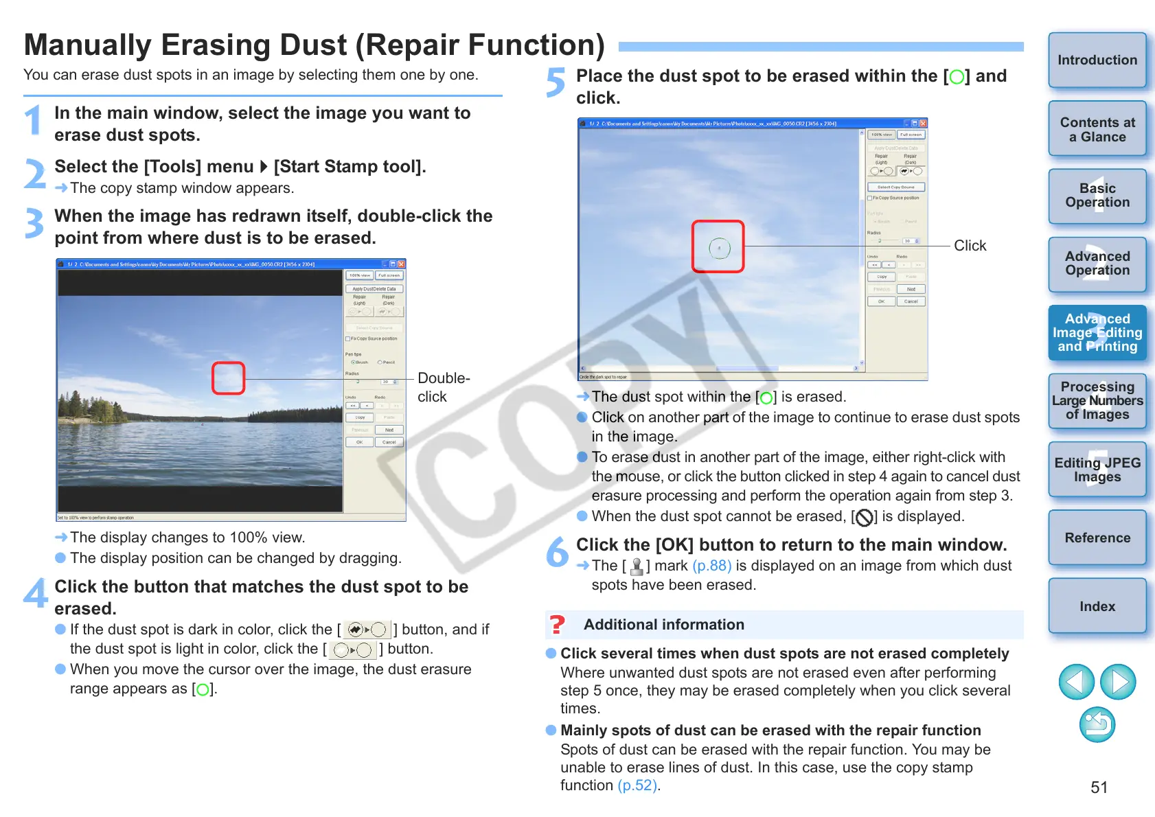 Manually Erasing Dust (Repair Function)