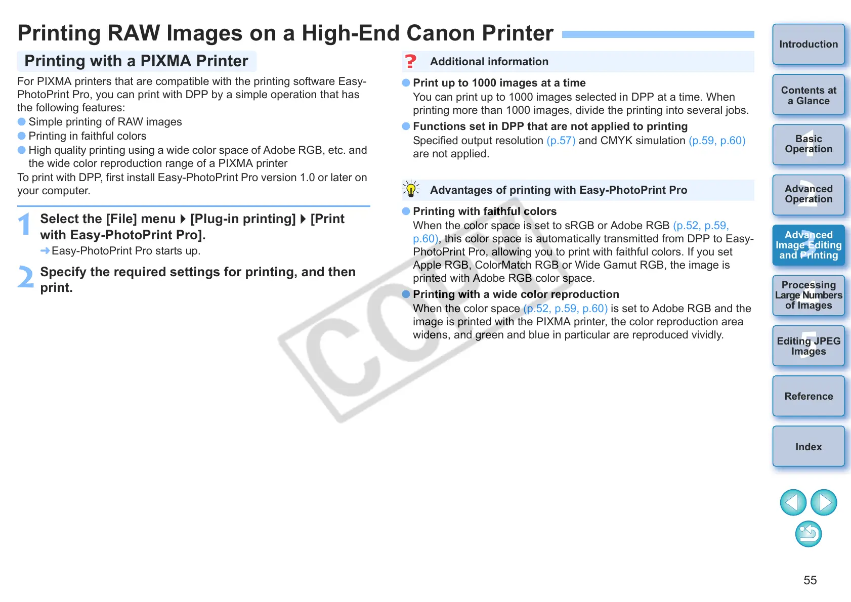 Specified output resolution (p.57) and CMYK simulation (p.59, p.60)