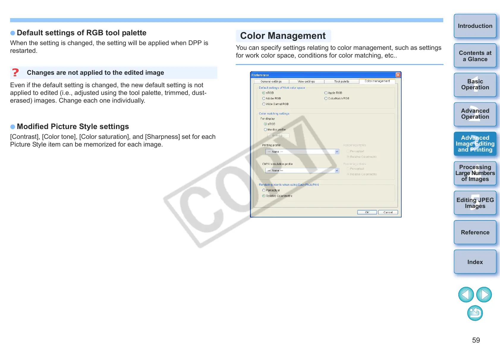 for work color space, conditions for color matching, etc..