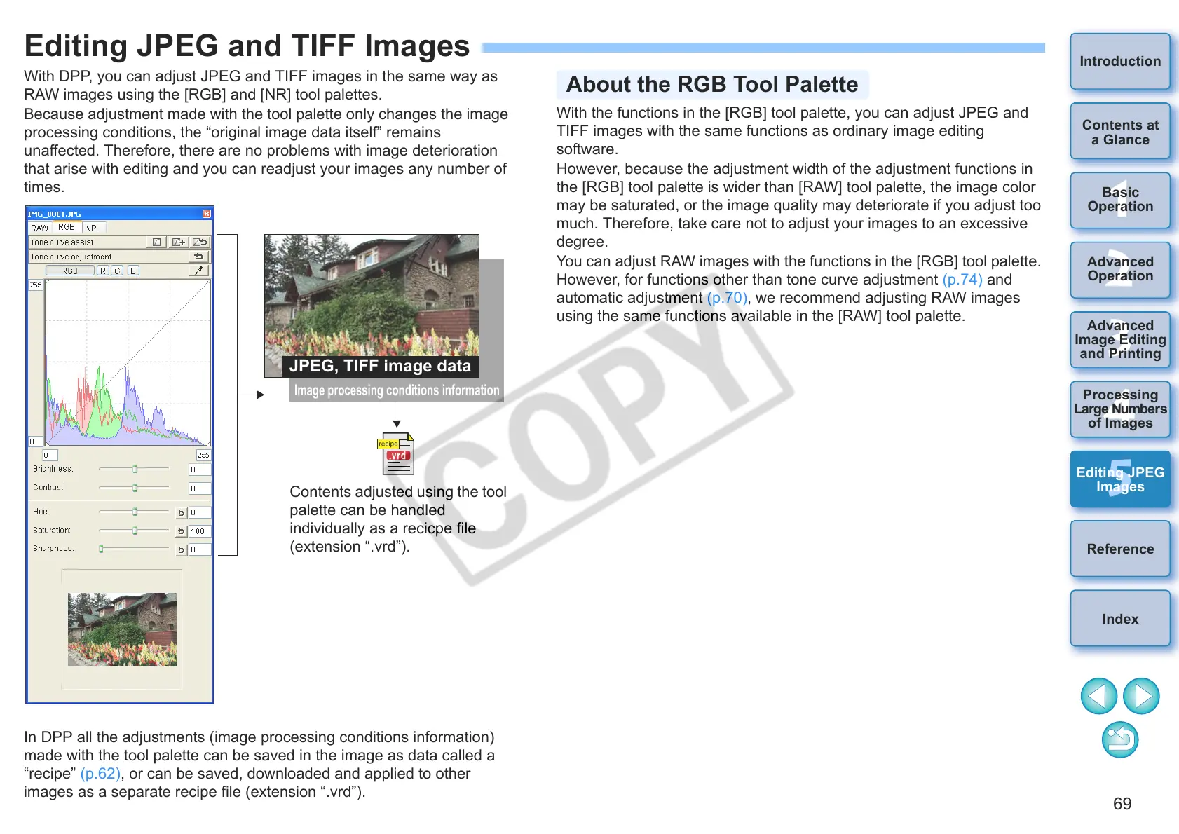 With DPP, you can adjust JPEG and TIFF images in the same way as