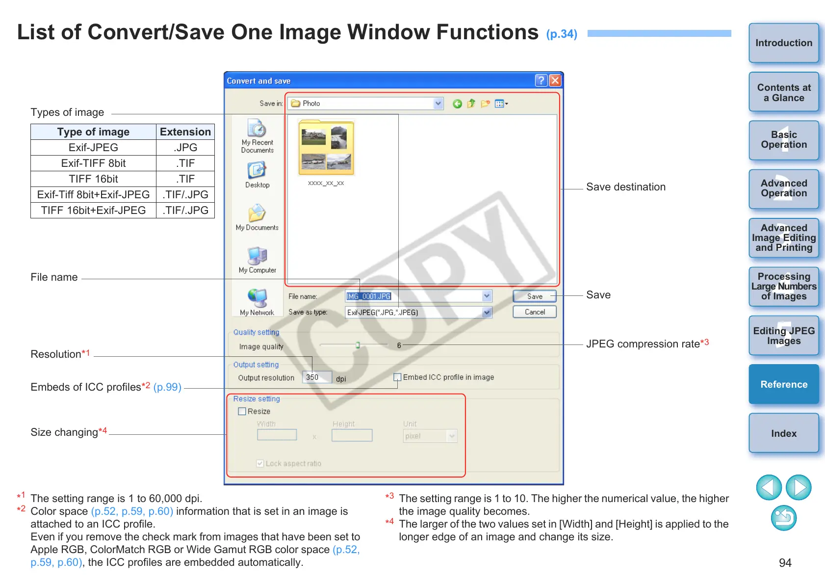 List of Convert/Save One Image Window Functions