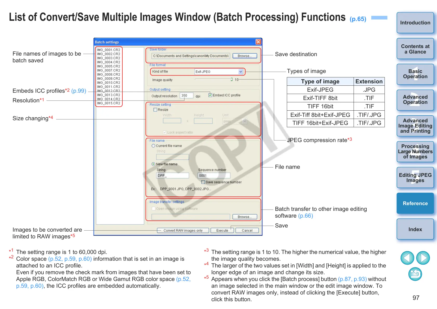 List of Convert/Save Multiple Images Window (Batch Processing) Functions