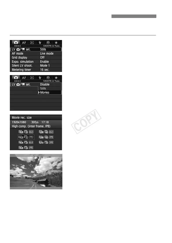 monitor as a movie. To shoot still photos, see page 203.