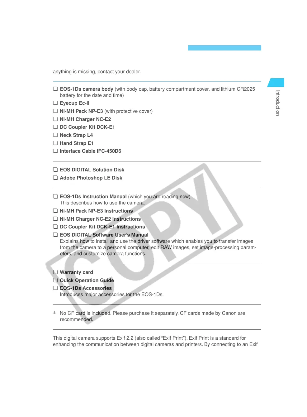 ¢ EOS-1Ds Instruction Manual (which you are reading now)