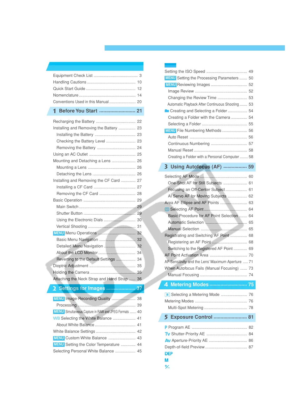 Registrating and Switching AF Point ............... 68