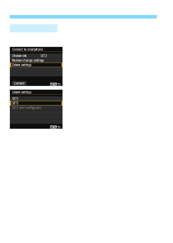 Select [Delete settings] on the screen for step 3 on page 112 to delete