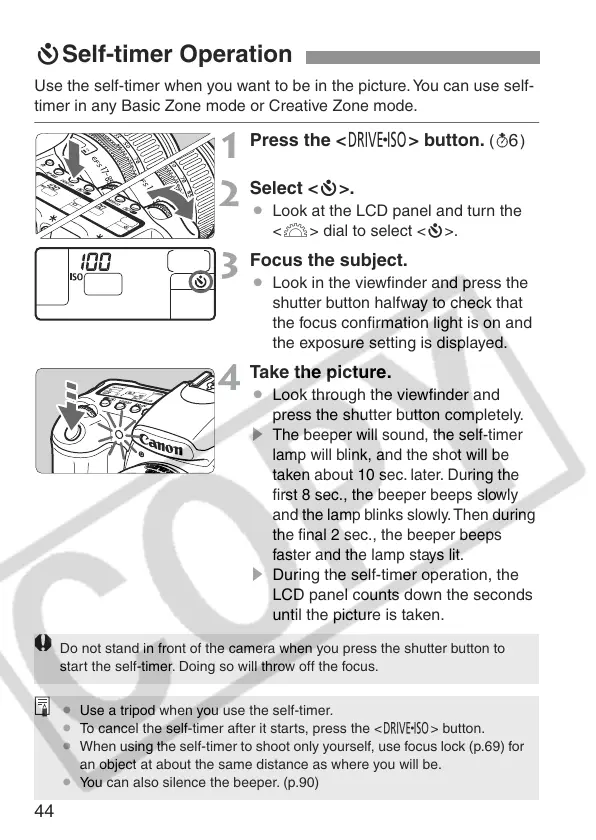 ¡ When using the self-timer to shoot only yourself, use focus lock (p.69) for