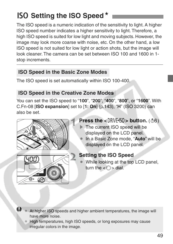 ¡ At higher ISO speeds and higher ambient temperatures, the image will