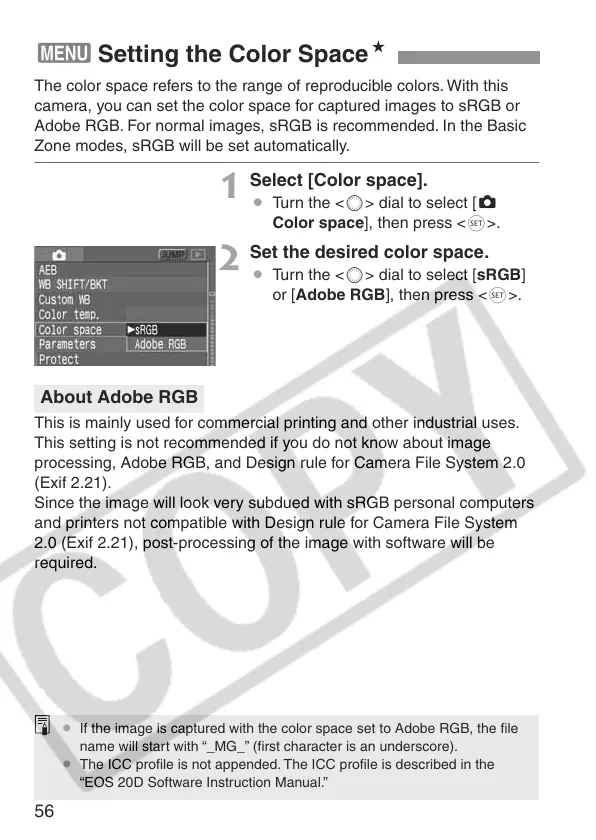 processing, Adobe RGB, and Design rule for Camera File System 2.0