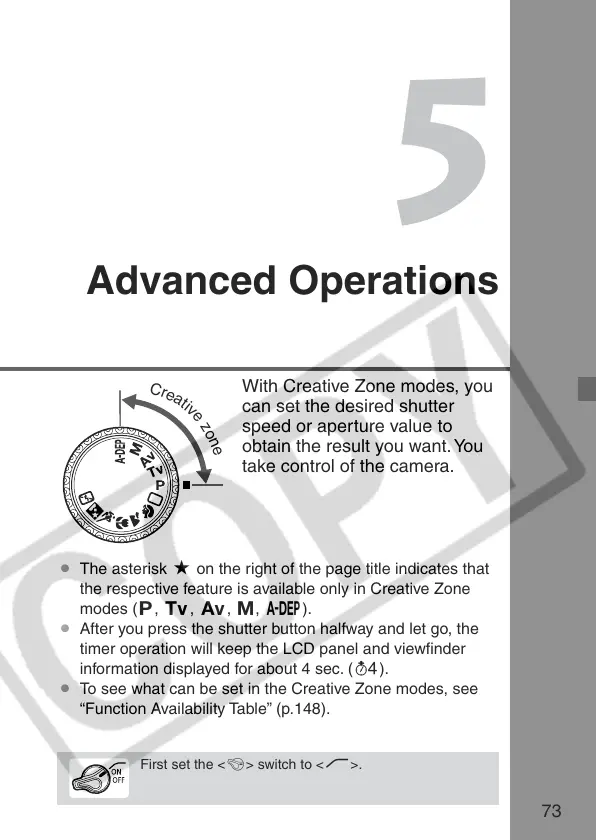 ¡ To see what can be set in the Creative Zone modes, see