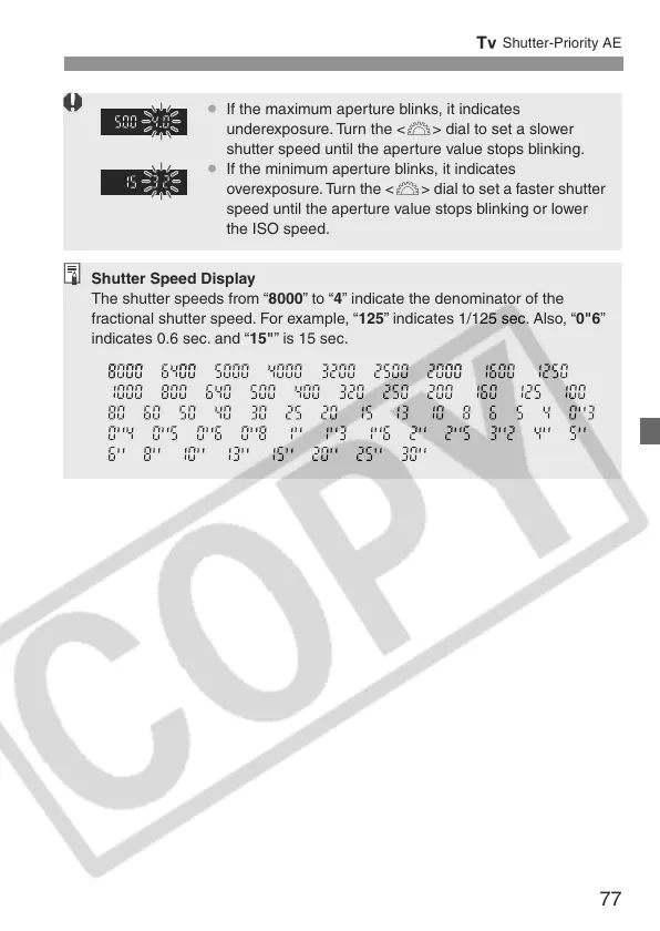 shutter speed until the aperture value stops blinking.